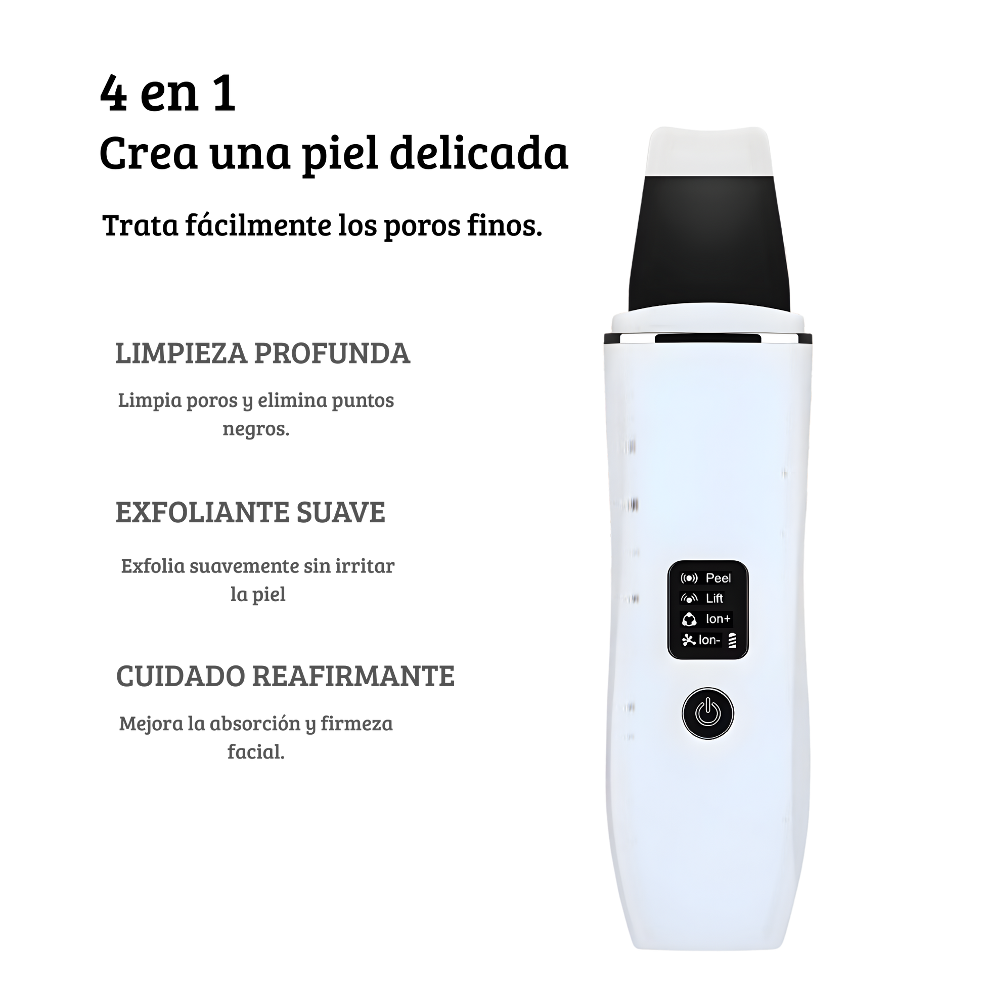 - 🔊 Tecnología ultrasónica avanzada que exfolia eficazmente la piel, eliminando células muertas, suciedad y puntos negros para una limpieza profunda.